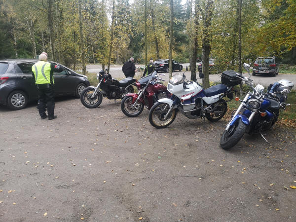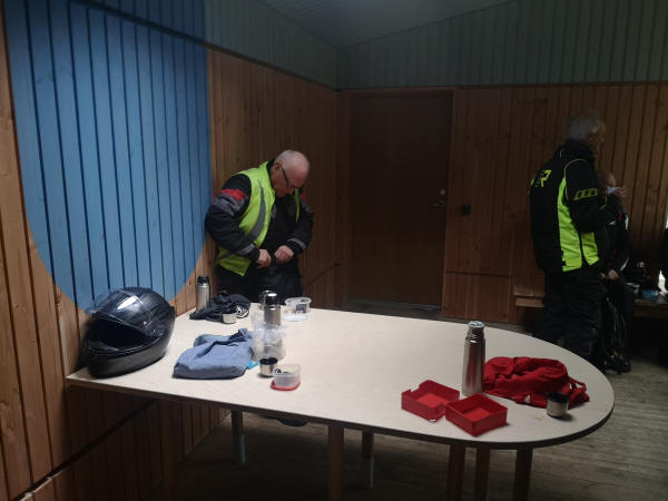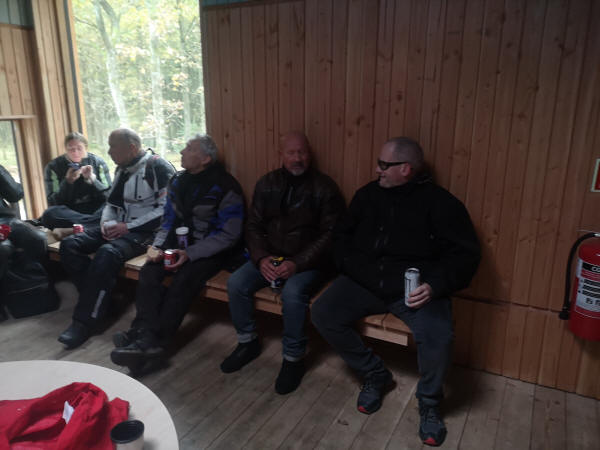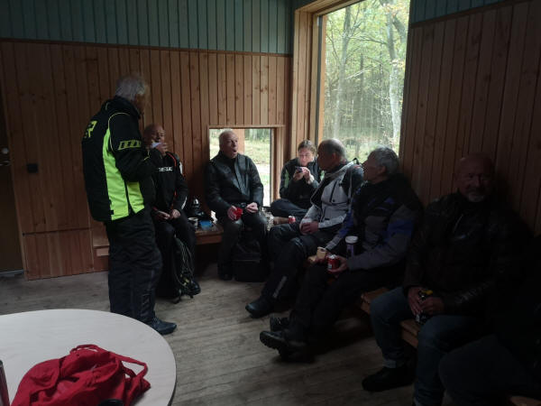 Billeder af Ronny Thiesen. Der var 10 friske MC kørere på den sidste tur i dag 2025, hvor vi endte på Rytterknægten, i shelter huset, hvor vi indtog vores medbragte drikkelse og småkager.